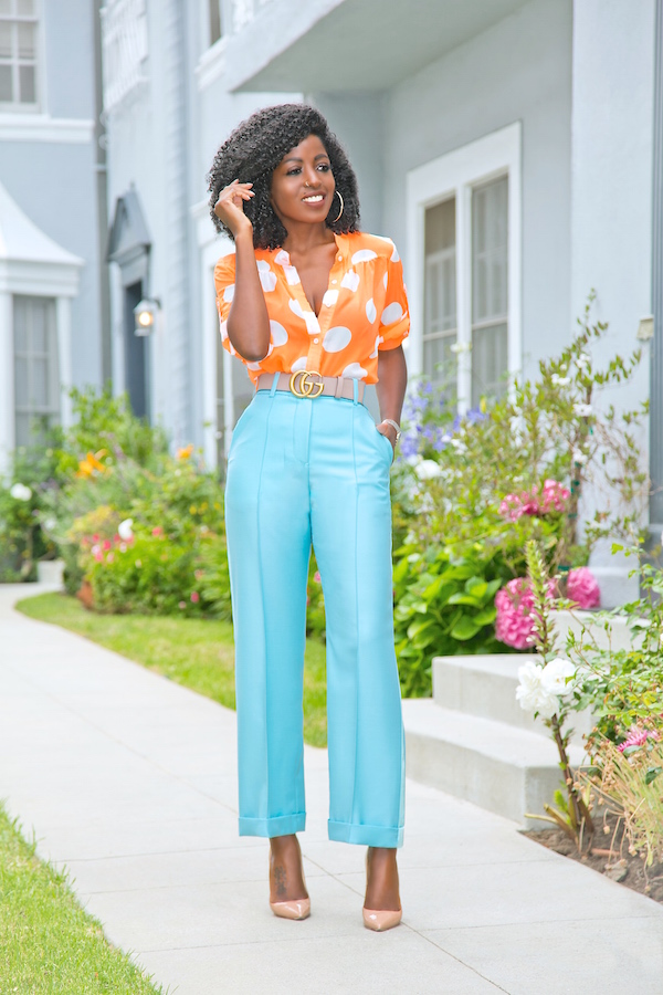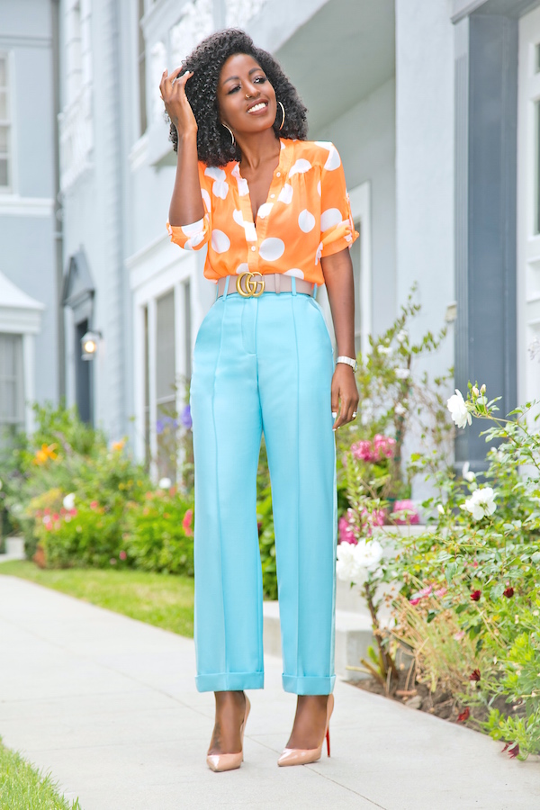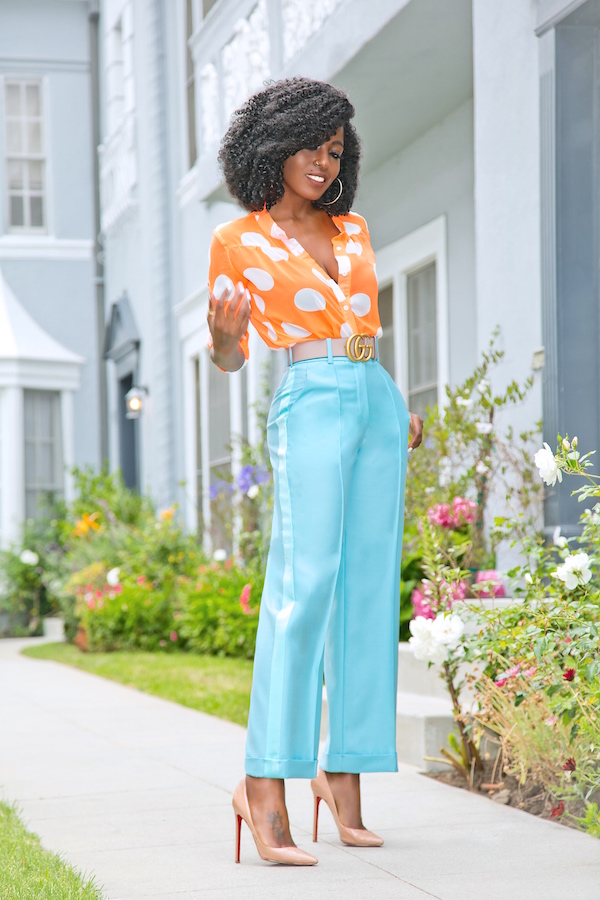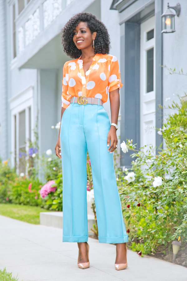 Neon Polka Dot Shirt + Tuxedo Ankle Length Pants