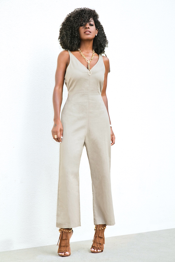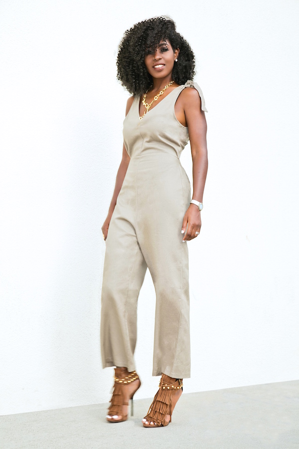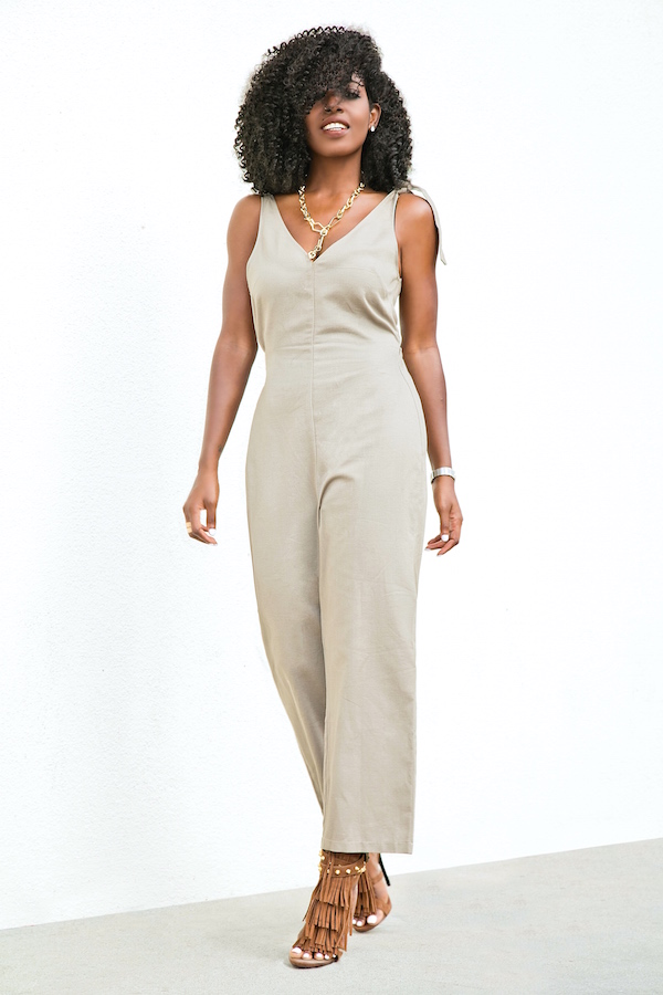V Neck Jumpsuit w/ Tie Shoulder Detail