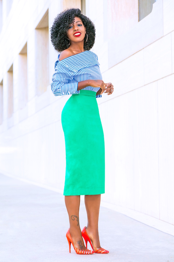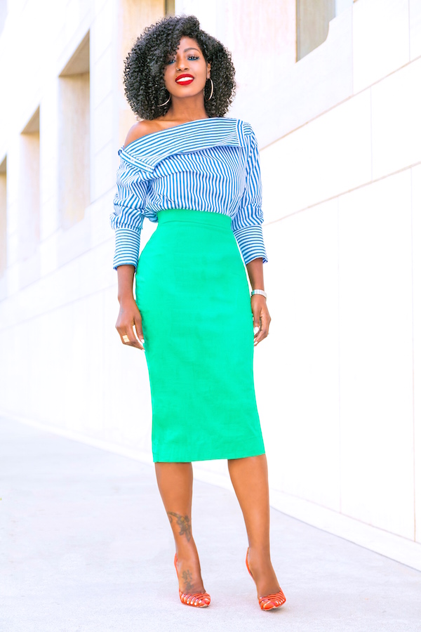 Striped Shirt + Pencil Midi Skirt December 28, 2017 A little under the weather today… Outfit Details: Shirt: Zara | Skirt: FKSP (old collection) | Shoes: Louboutin. Enjoy and have a blessed one. xo Tags FKSP folake huntoon get the look green pencil skirt midi pencil skirt my style pencil skirt striped off the shoulder stripes Style Pantry