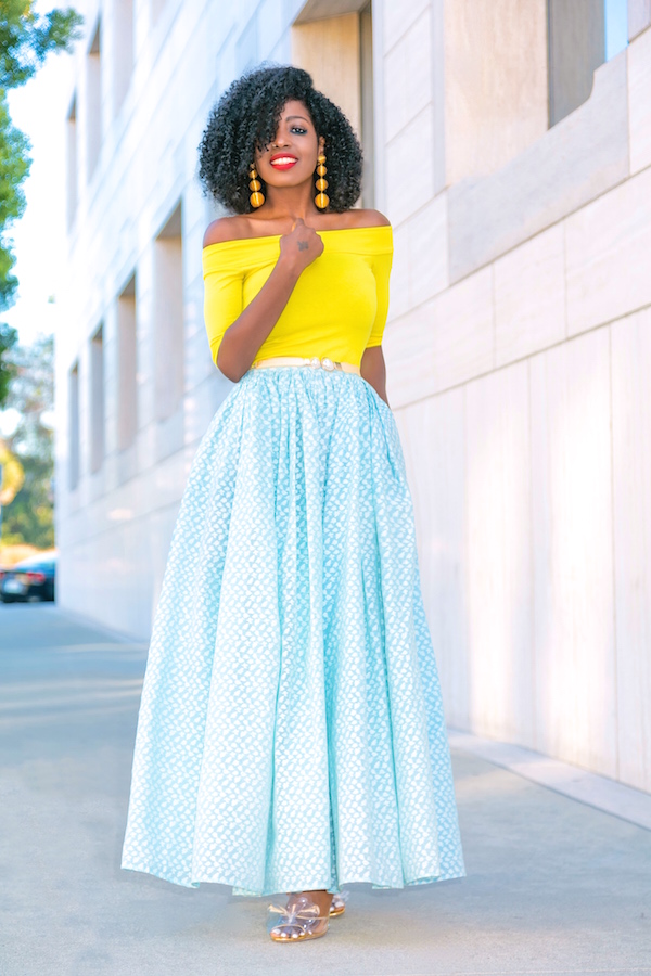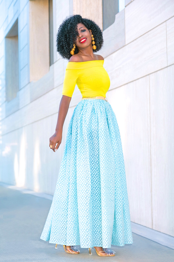 Bardot Fitted Top + Tea Length Print Skirt