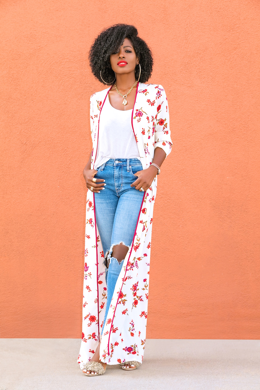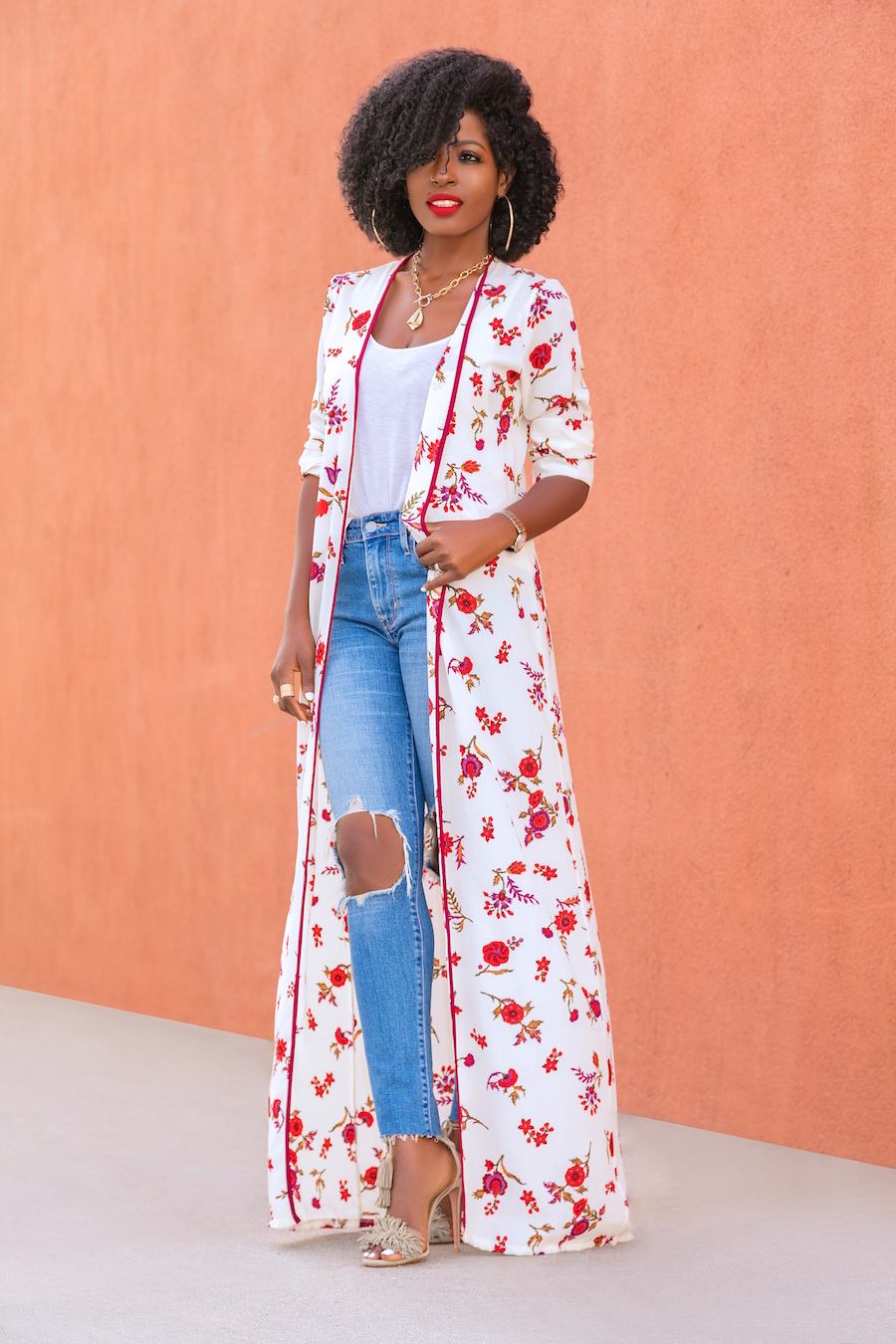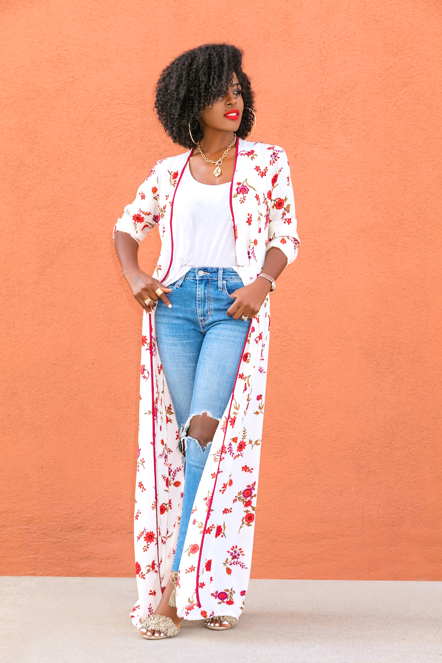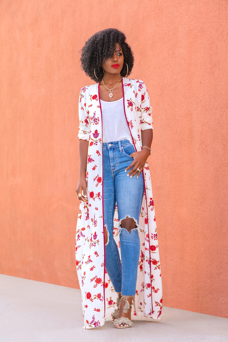 Floral Kimono + Tank + Ripped Jeans