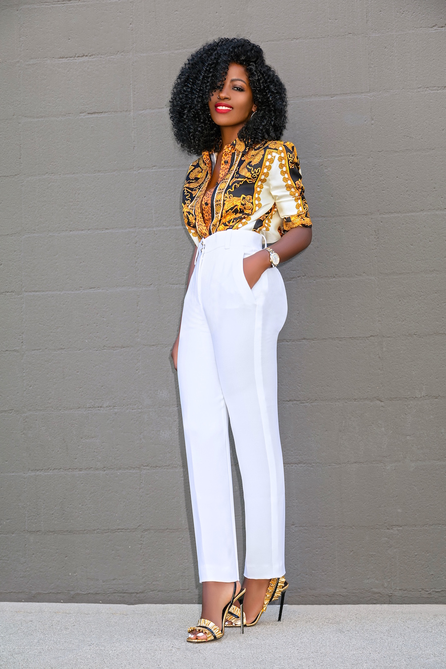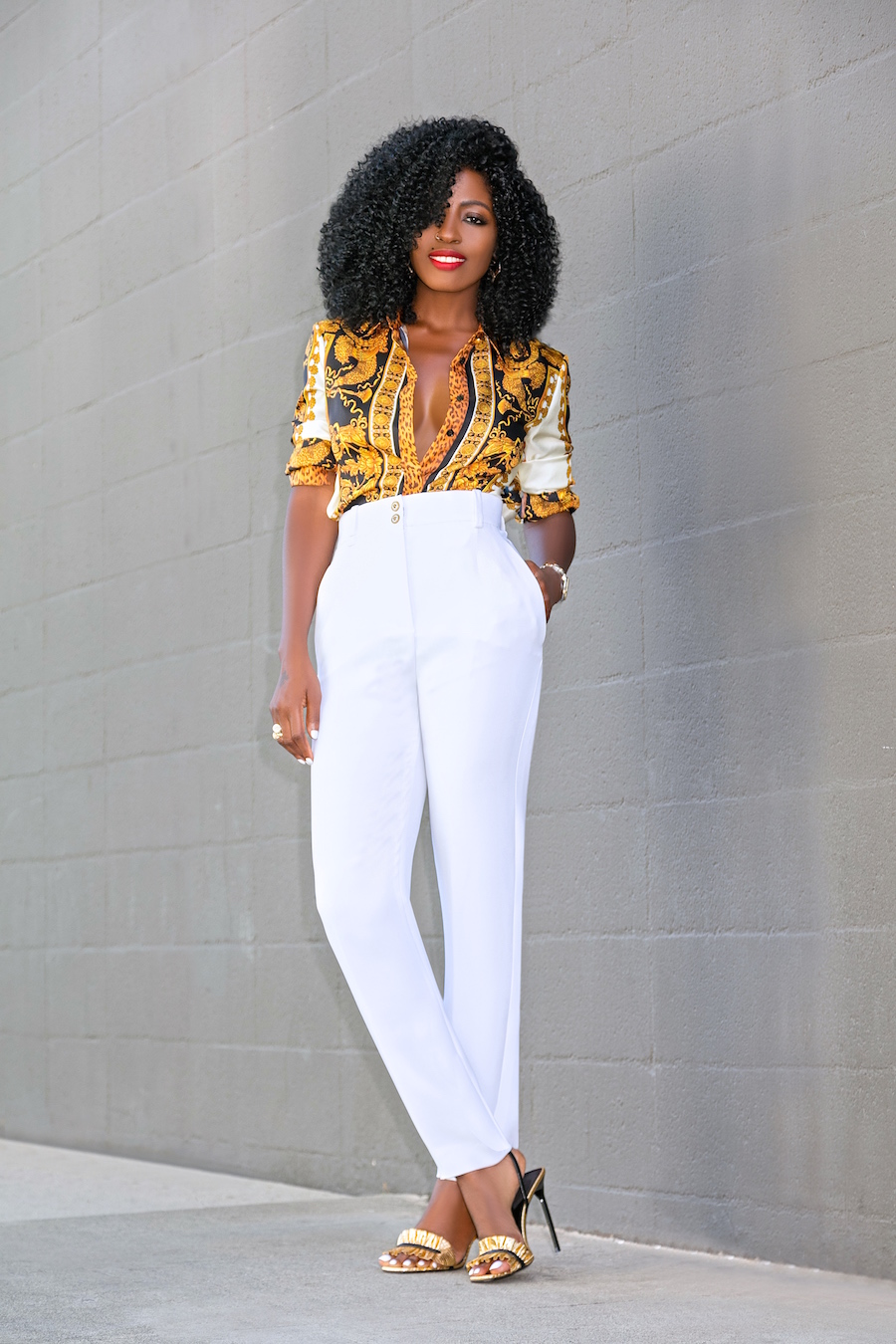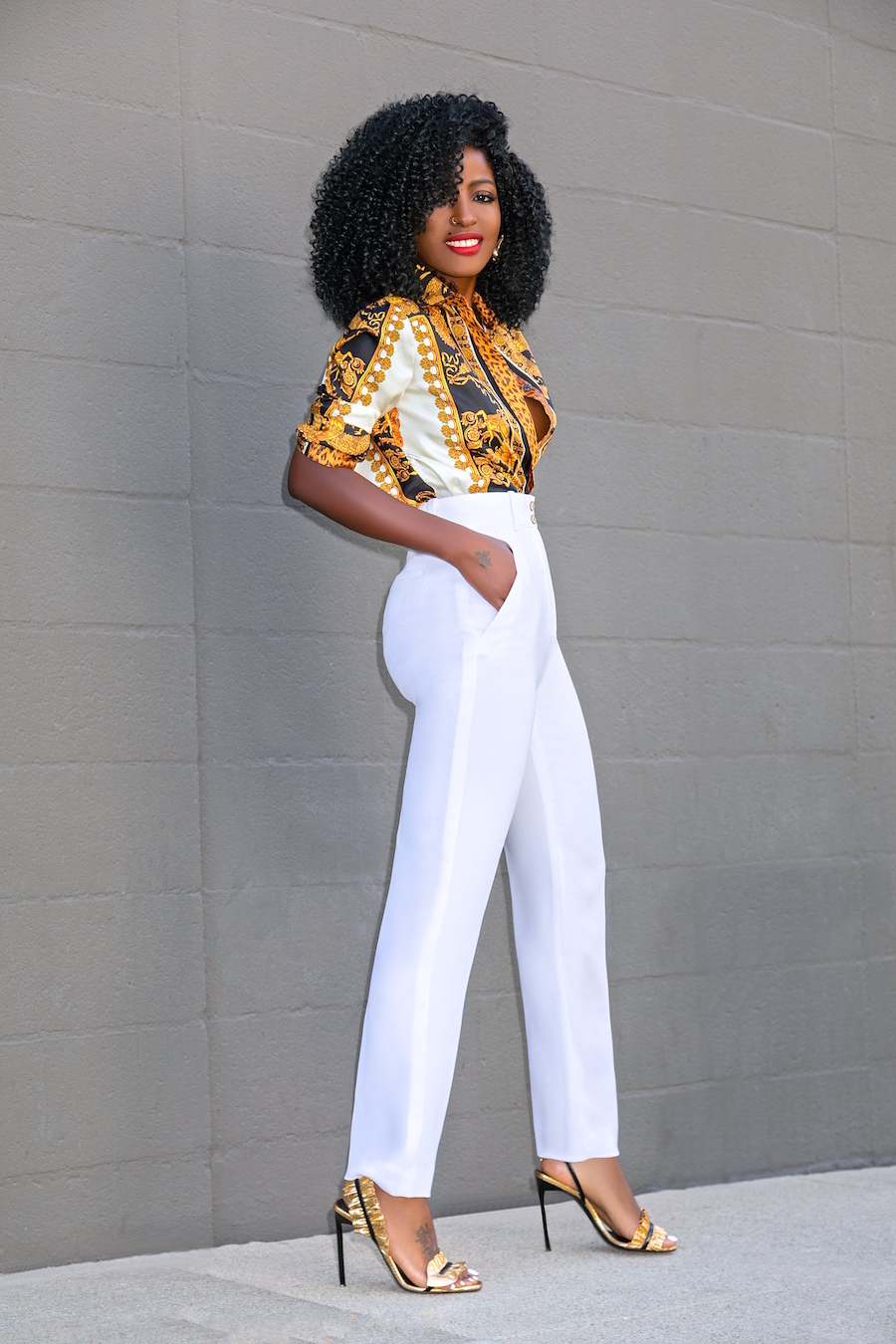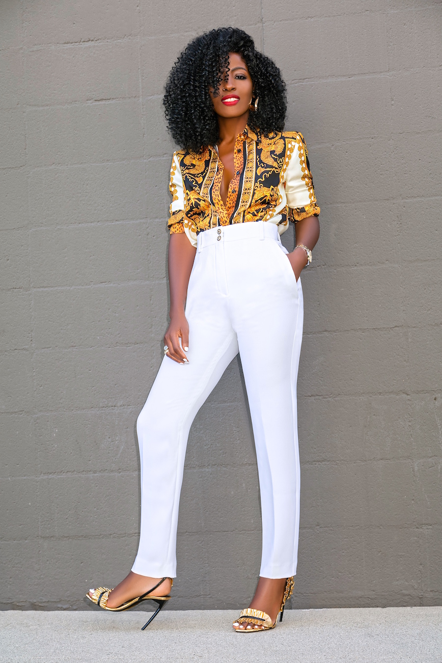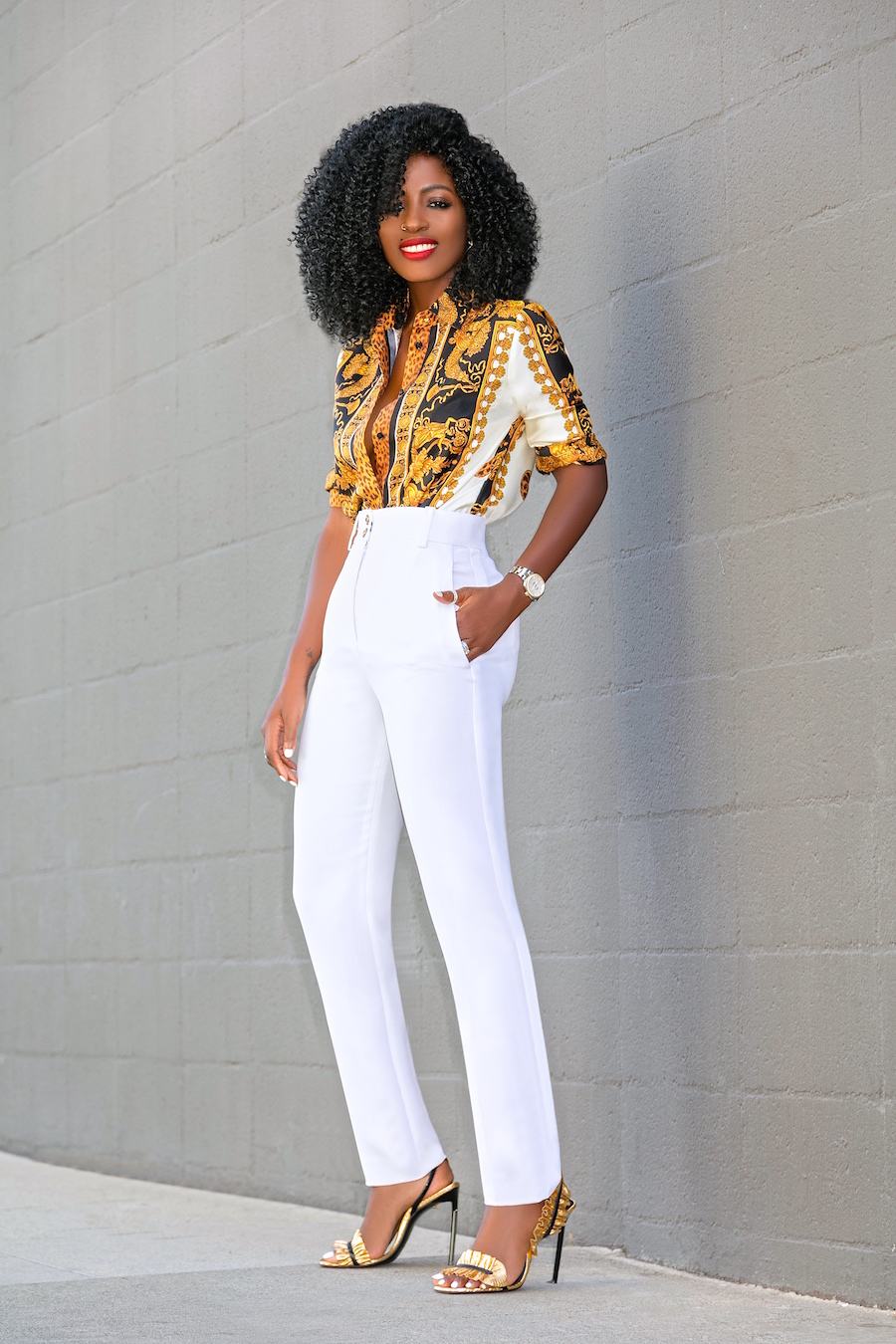 Shirt: Versace available here, budget friendly here or here (ditch the leggings) | Pants: Versace available there, love these budget friendly options here, here or here | Shoes: Saint Laurent. Enjoy and have a blessed one. xo