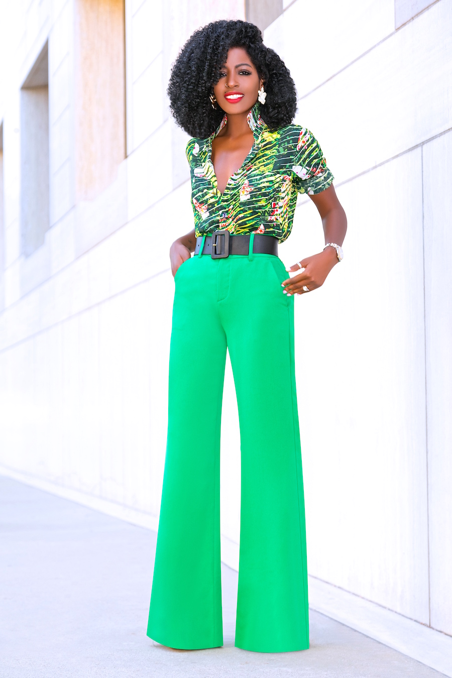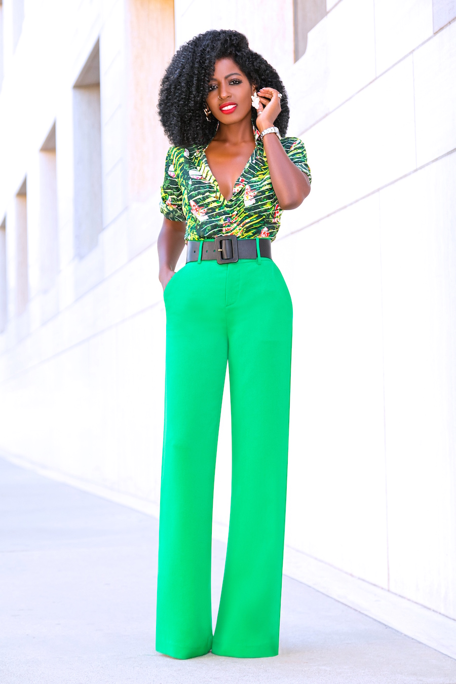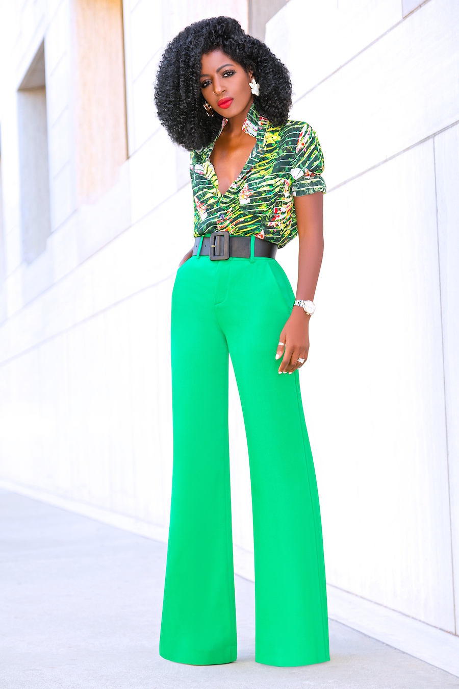 Print Button Down Shirt + High Waist Wide Leg Pants