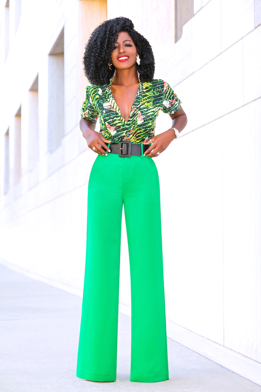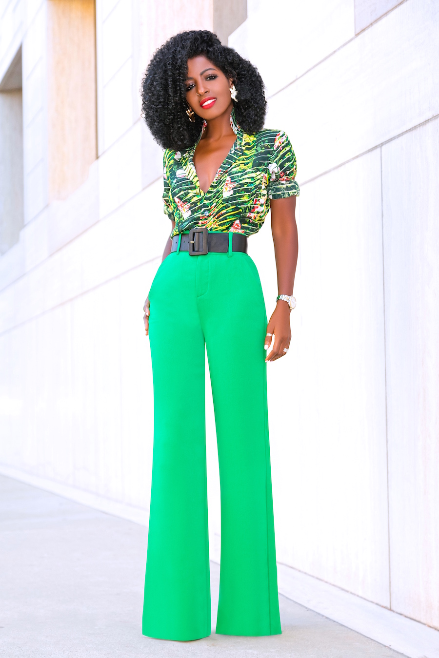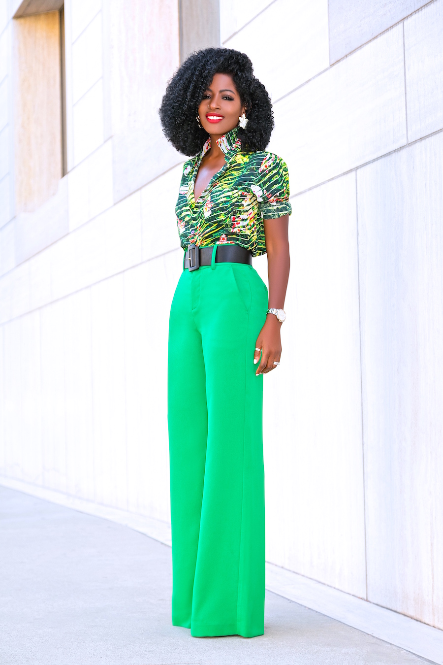 Print Button Down Shirt + High Waist Wide Leg Pants