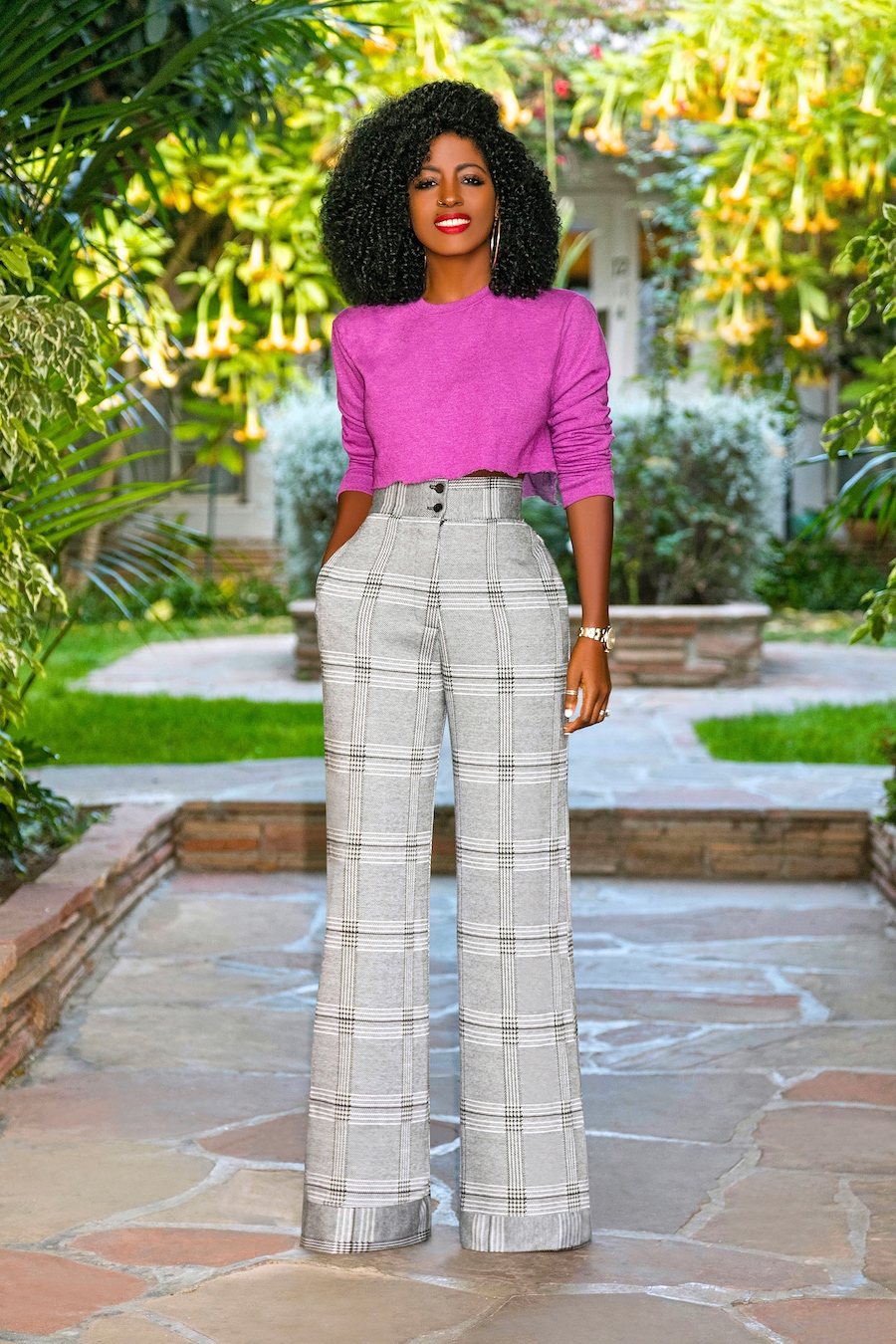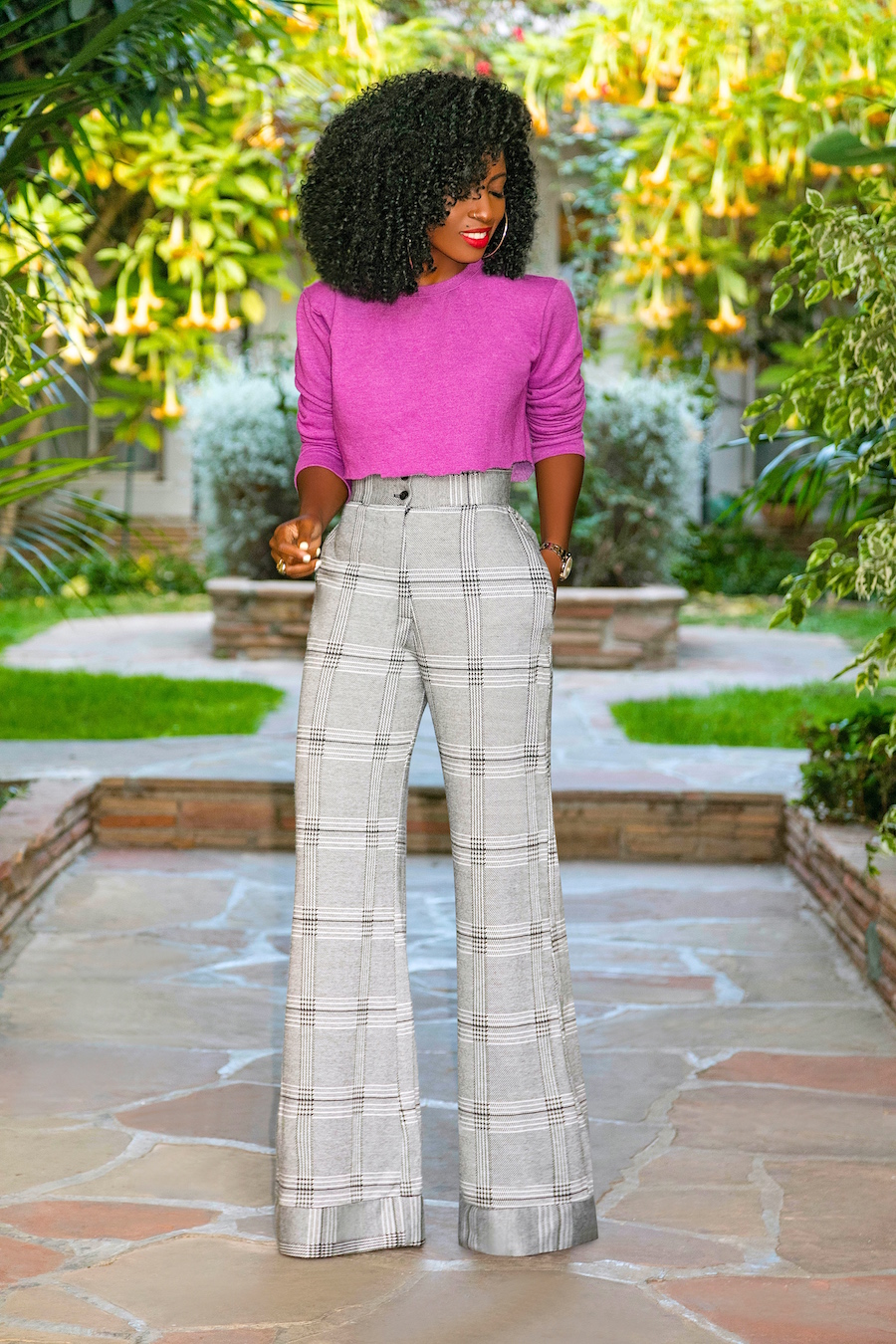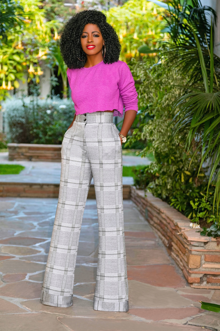 Cropped (DIY) Crew Neck + Houndstooth High Waist Pants