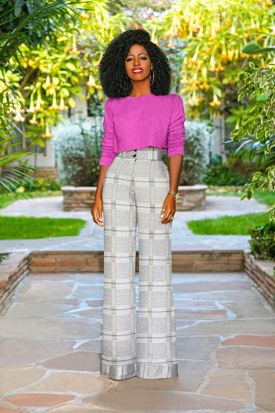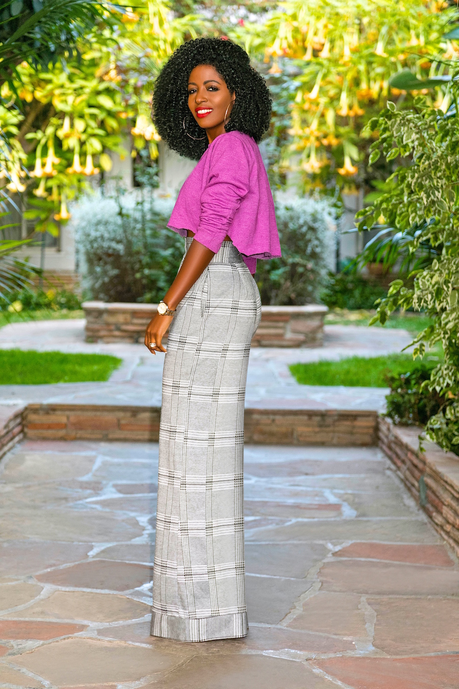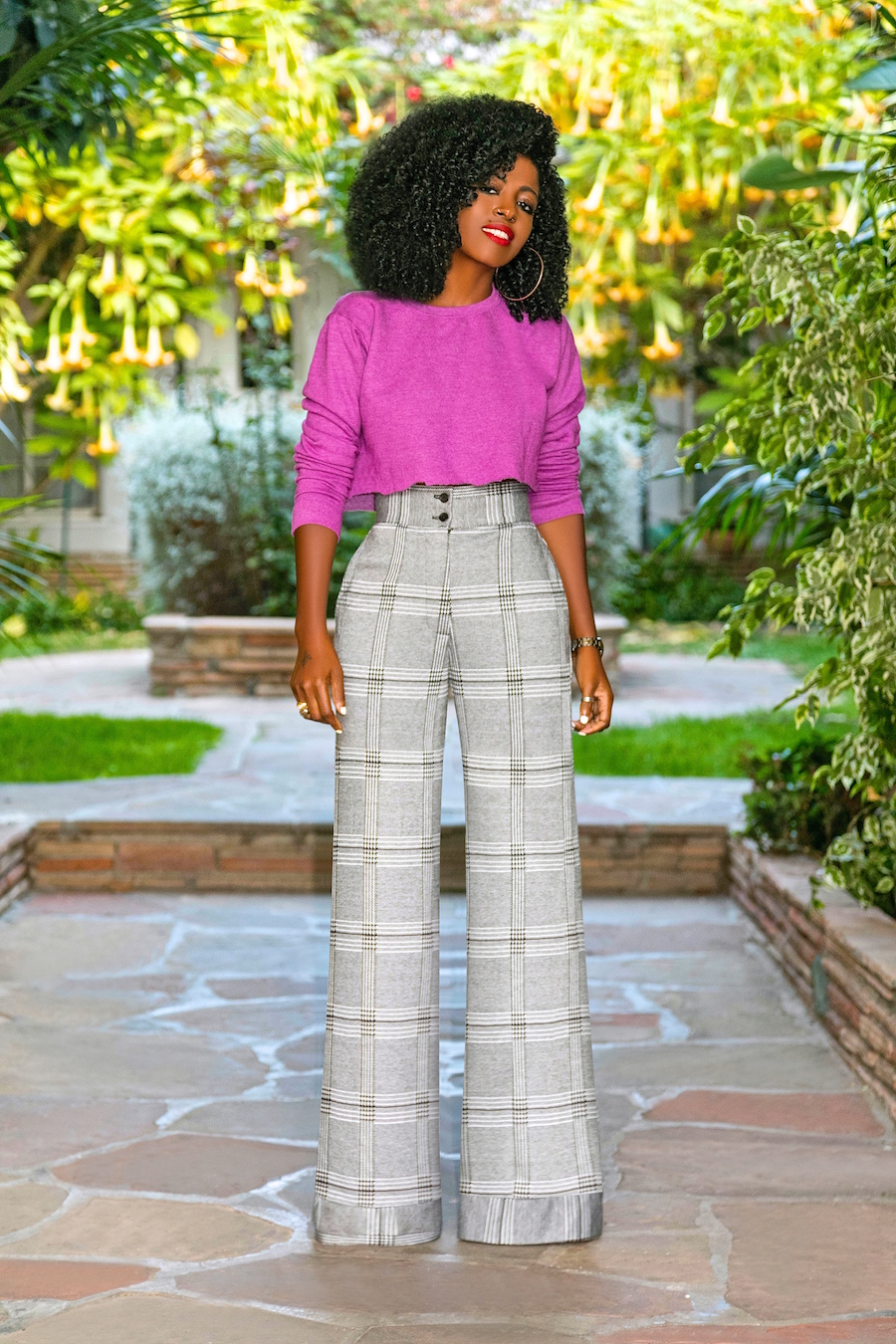Cropped (DIY) Crew Neck + Houndstooth High Waist Pants
