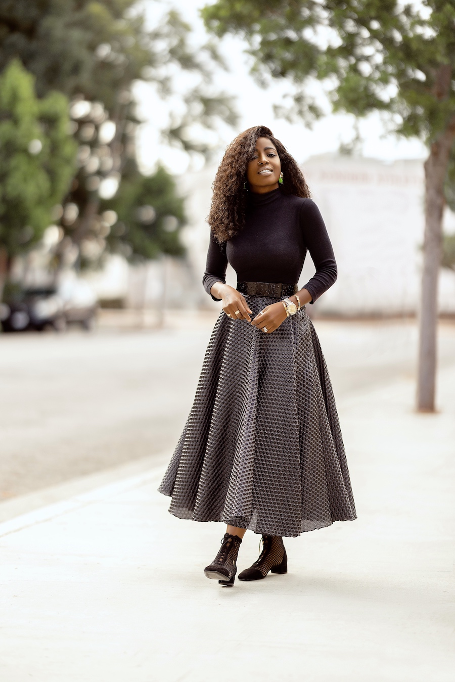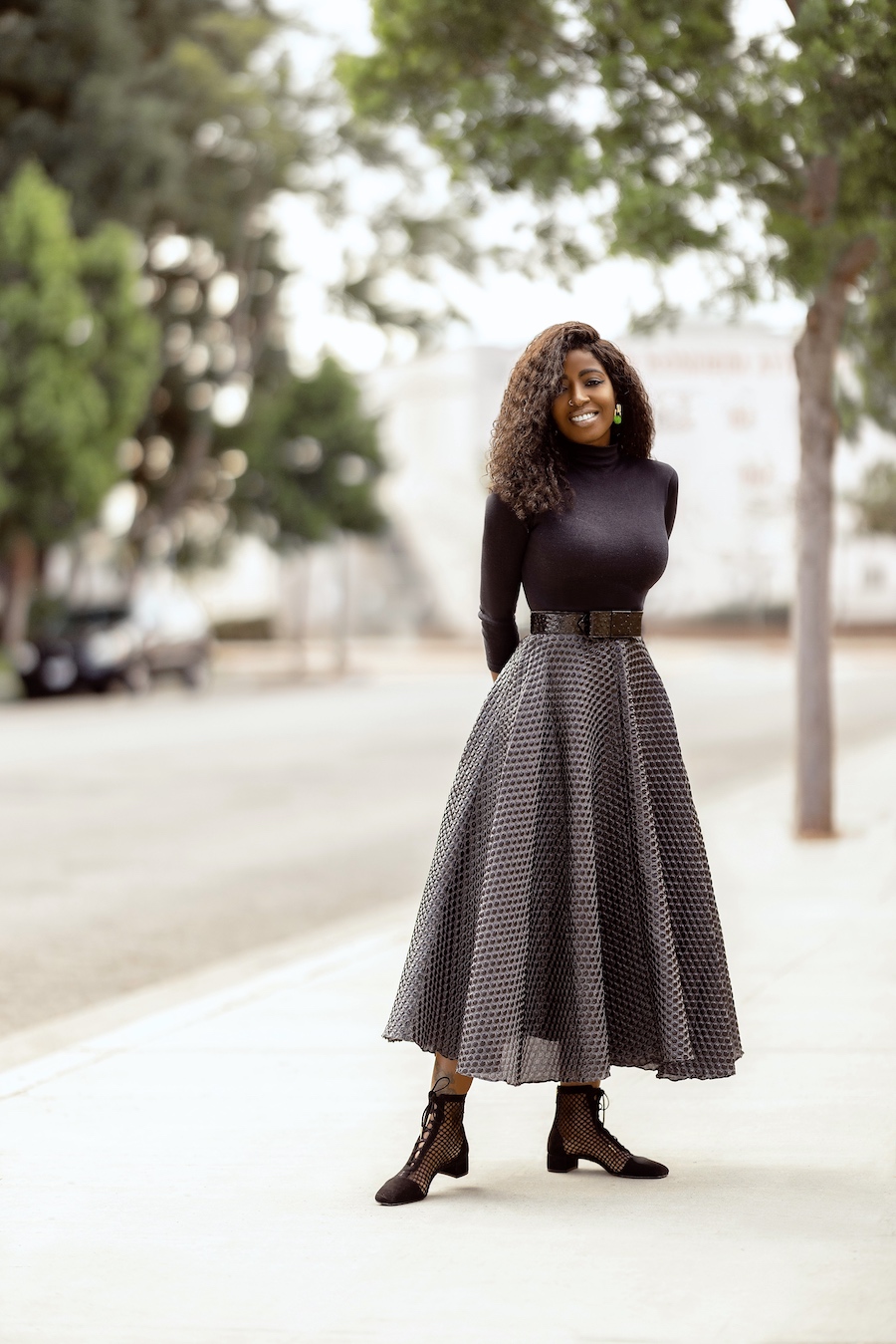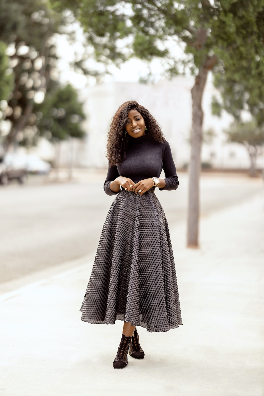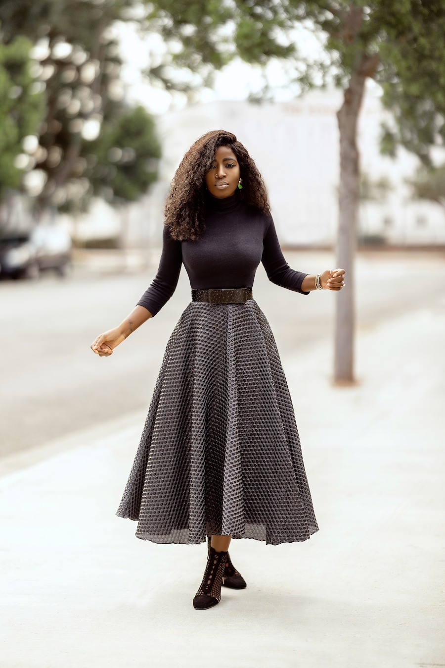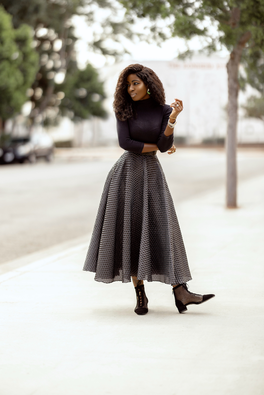 Mock Neck Top + Tea Length Swing Skirt