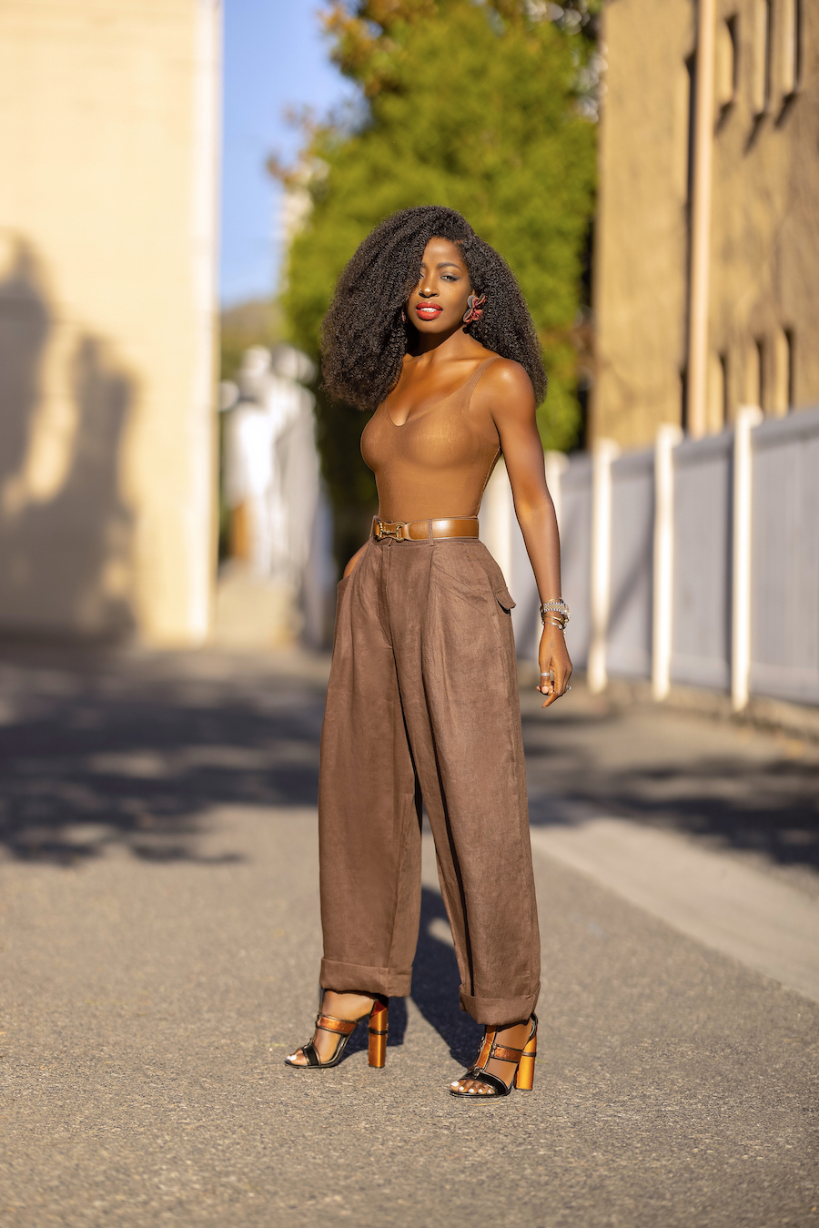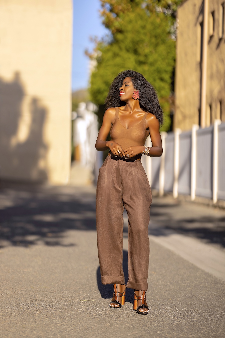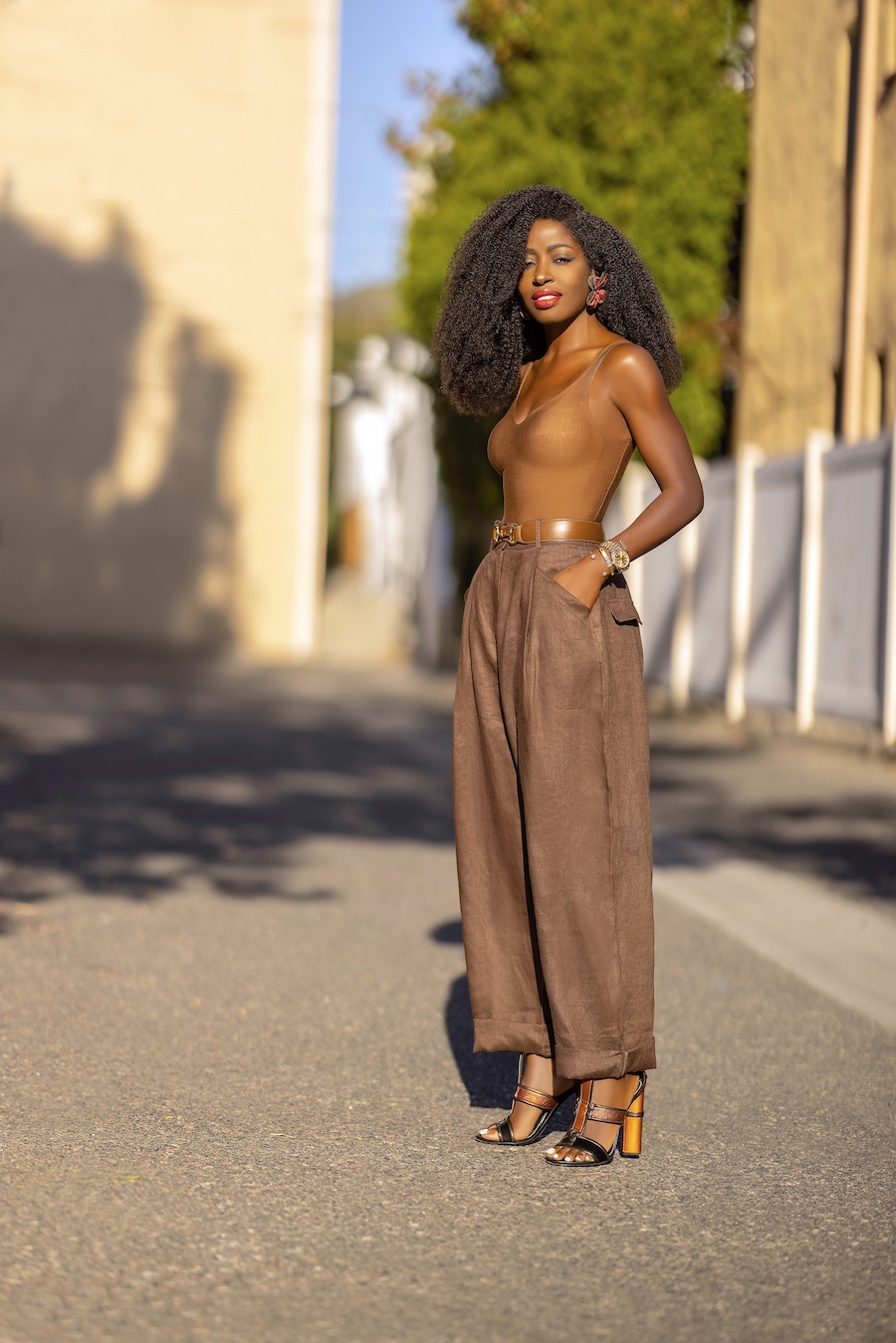 Commando Bodysuit + High Waist Linen Pants