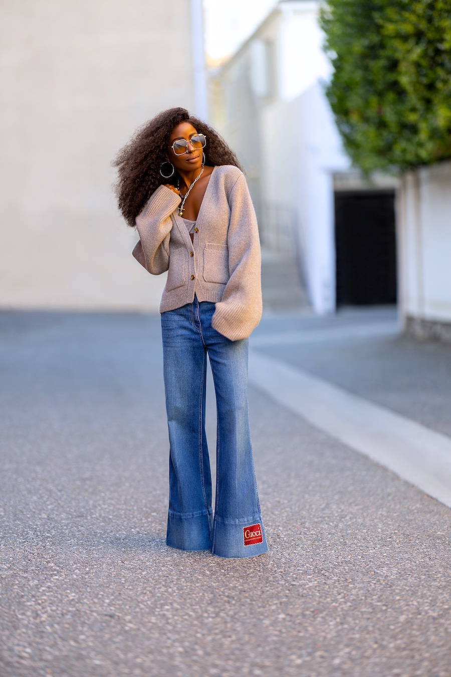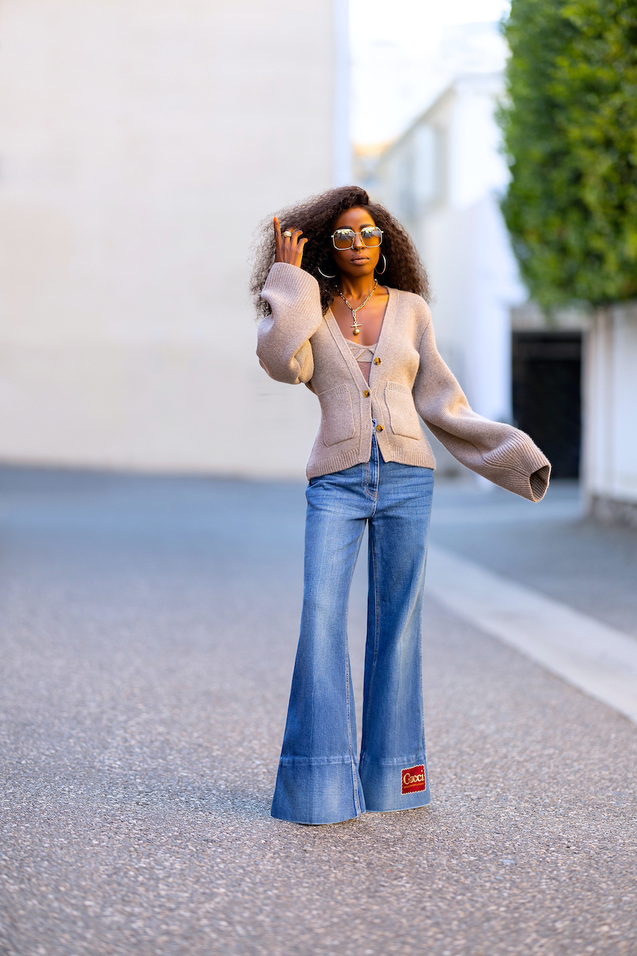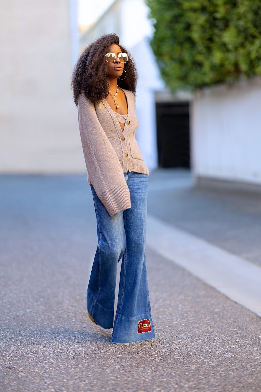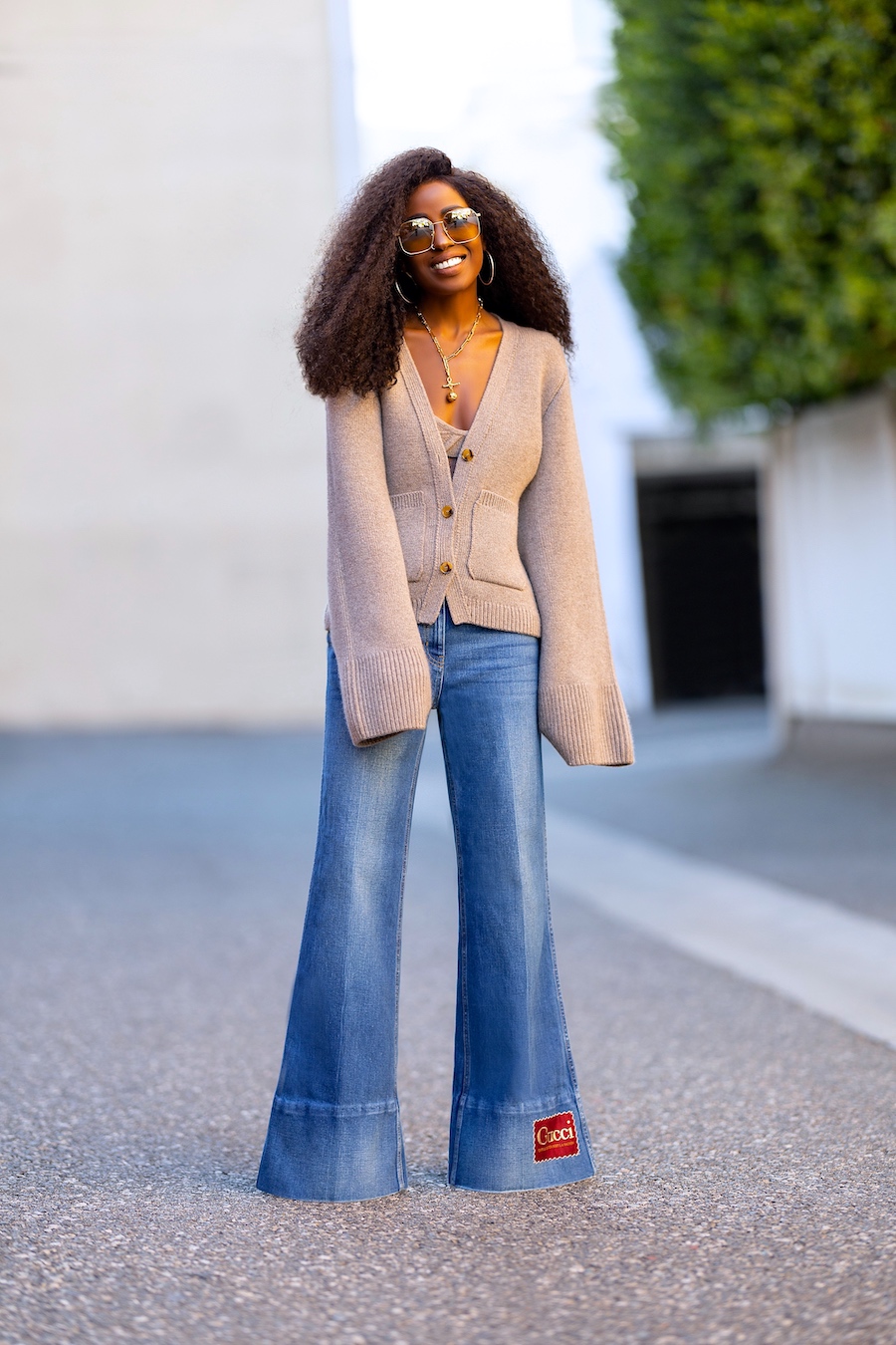 Flared Sleeve Cardigan + Flare Jeans November 18, 2022 Outfit Details: Cardigan: Khaite | Bralette: Khaite | Sunnies: Bottega | Jeans: Here or there. Enjoy and have a blessed weekend. xo Tags Folake H. folake huntoon Folake Kuye Huntoon folake kuye style pantry get the look gucci flare jeans Khaite Khaite cashmere bralette Khaite cashmere cardigan my style ootd outfit of the day Style Pantry